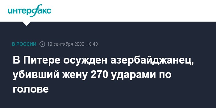 В Питере осужден азербайджанец, убивший жену 270 ударами по голове