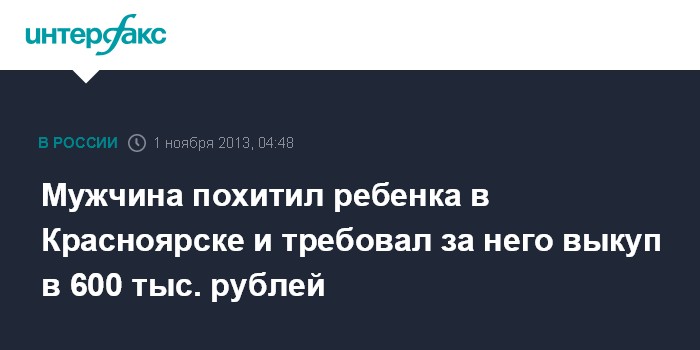Красноярск. 1 ноября. ИНТЕРФАКС-СИБИРЬ - Полиция задержала в пятницу мужчину, который накануне похитил в Красноярске мальчика с целью требования выкупа, сообщила агентству "Интерфакс-Сибирь" начальник пресс-службы ГУ МВД России по Красноярскому краю Ирина Мужецкая.
