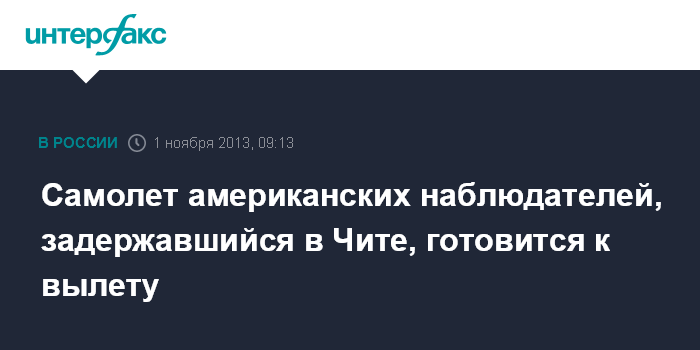 Чита. 1 ноября. INTERFAX.RU - Экипаж самолета США, который направлялся в Улан-Удэ в рамках договора по открытому небу (ДОН) и приземлившийся в Чите, ведет подготовку к взлету.