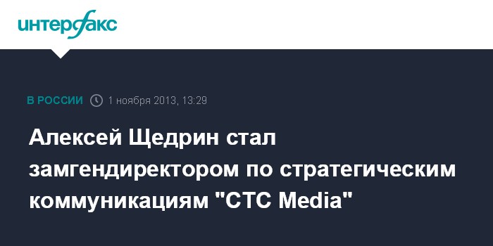 Москва. 1 ноября. INTERFAX.RU - "CTC Media" назначила Алексея Щедрина заместителем гендиректора по стратегическим коммуникациям.