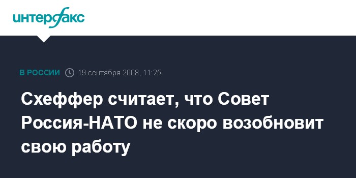 Москва. 19 сентября. INTERFAX.RU - Генеральный секретарь НАТО Яап де Хооп Схеффер говорит о важности для альянса отношений с Россией, однако не ожидает скорого возобновления работы Совета Россия-НАТО на уровне послов в свете признания Россией независимости Абхазии и Южной Осетии.