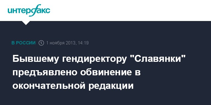 Бывшему гендиректору "Славянки" предъявлено обвинение в окончательной редакции