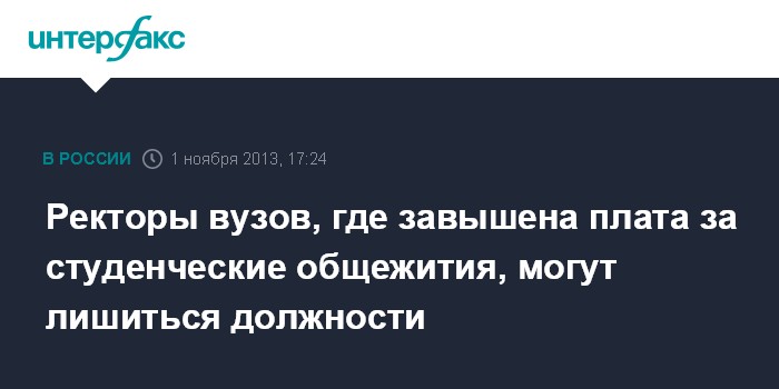 Москва. 1 ноября. INTERFAX.RU - Ректоры вузов могут поплатиться своей должностью, если плата за студенческое общежитие неоправданно завышена, заявляют в руководстве "Единой России".