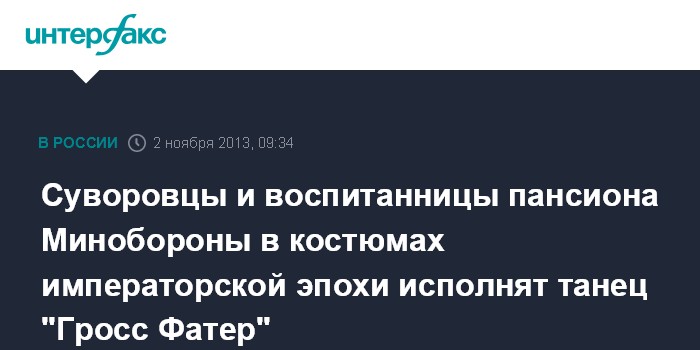 Суворовцы и воспитанницы пансиона Минобороны в костюмах императорской эпохи исполнят танец "Гросс Фатер"