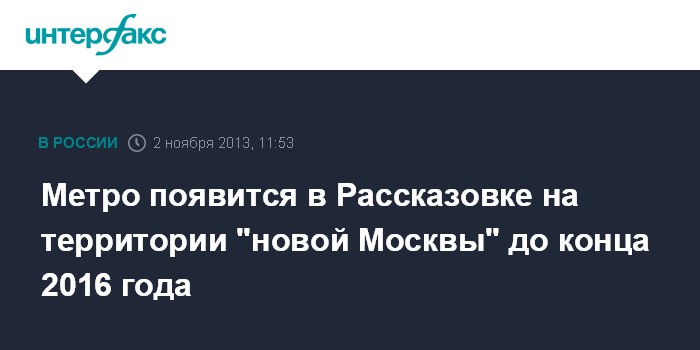 Метро появится в Рассказовке на территории "новой Москвы" до конца 2016 года