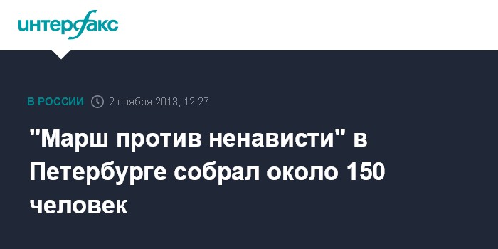 Акция продолжалась немногим более часа. Организаторами "Марша против ненависти" выступила коалиция "Демократический Петербург", в которую входит около 20 общественных организаций, движений, региональных отделений партий.