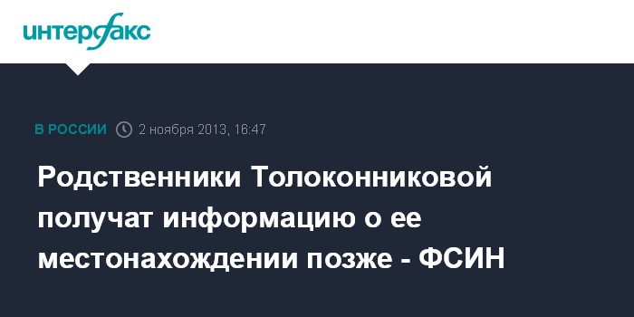 Родственники Толоконниковой получат информацию о ее местонахождении позже - ФСИН