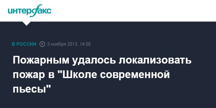 Пожарным удалось локализовать пожар в "Школе современной пьесы"