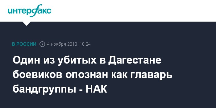 Москва. 4 ноября. INTERFAX.RU - Личность одного из трех уничтоженных в Лакском районе Дагестана бандитов установлена. Это Рабаданов Халид, 1977г.р., главарь "левашинской преступной группы", сообщили в НАК.