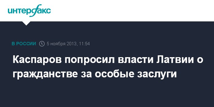 Рига. 5 ноября. INTERFAX.RU - Экс-чемпион мира по шахматам Гарри Каспаров попросил власти Латвии, чтобы ему предоставили гражданство этой страны за особые заслуги.