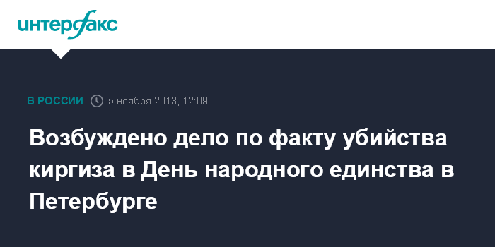 Санкт-Петербург. 5 ноября. INTERFAX.RU - Полиция Санкт-Петербурга возбудила уголовное дело по факту причинения вреда здоровью, повлекшего смерть гражданина Киргизии, сообщил "Интерфаксу" источник в правоохранительных органах во вторник.