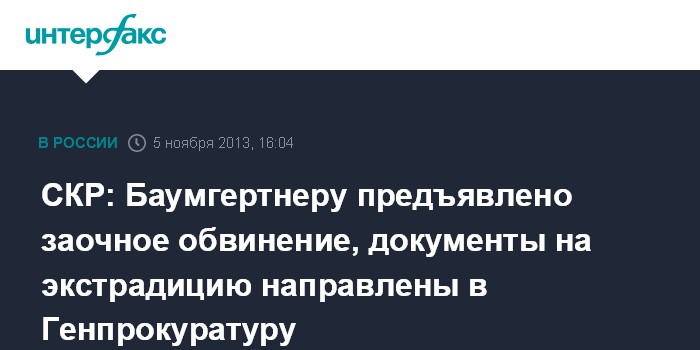 СКР: Баумгертнеру предъявлено заочное обвинение, документы на экстрадицию направлены в Генпрокуратуру