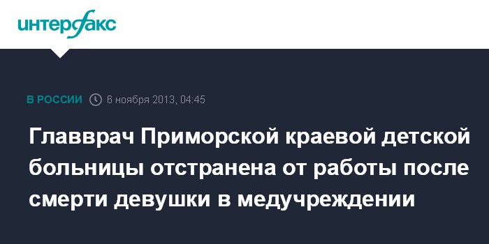 Главврач Приморской краевой детской больницы отстранена от работы после смерти девушки в медучреждении