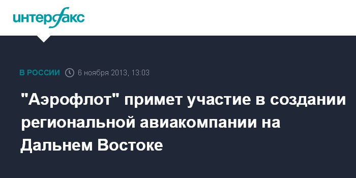 "Аэрофлот" примет участие в создании региональной авиакомпании на Дальнем Востоке