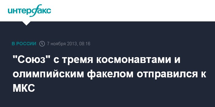На борту "Союза" находится олимпийский факел, который 9 ноября российские космонавты вынесут в открытый космос. 11 числа он вернется на Землю. Именно от этого факела будет зажжен главный олимпийский огонь в Сочи.