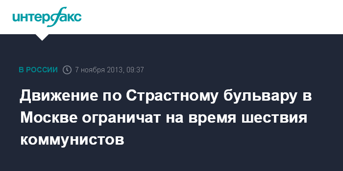 Движение по Страстному бульвару в Москве ограничат на время шествия коммунистов