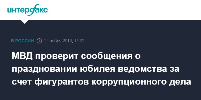 МВД проверит сообщения о праздновании юбилея ведомства за счет фигурантов коррупционного дела