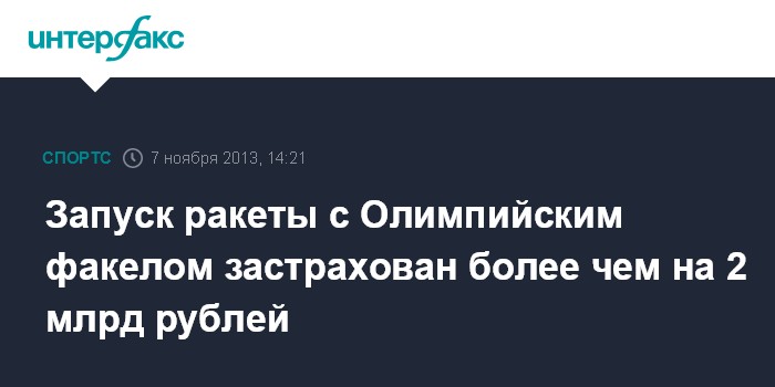 Запуск ракеты с Олимпийским факелом застрахован более чем на 2 млрд рублей
