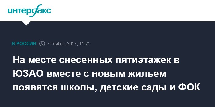 Москва. 7 ноября.INTERFAX.RU - Две общеобразовательные школы и одну музыкальную, физкультурно-оздоровительный комплекс и три детских сада будут простроены одновременно с жилыми домами на месте снесенных пятиэтажек на юго-западе Москвы, сообщили в пресс-службе департамента градостроительной политики.