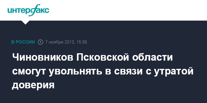 Чиновников Псковской области смогут увольнять в связи с утратой доверия