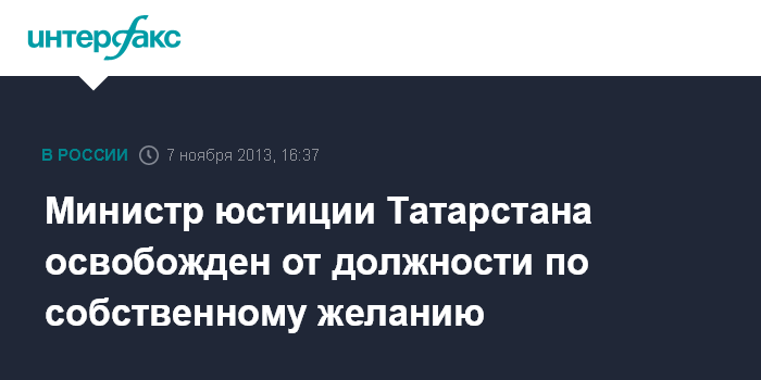 Министр юстиции Татарстана освобожден от должности по собственному желанию