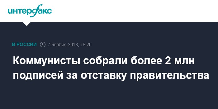Москва. 7 ноября. INTERFAX.RU - КПРФ собрала более двух миллионов подписей за отставку правительства, заявил лидер партии Геннадий Зюганов.