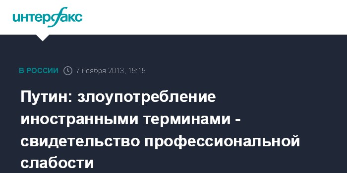 Путин: злоупотребление иностранными терминами - свидетельство профессиональной слабости