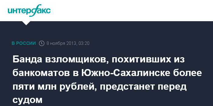 Банда взломщиков, похитивших из банкоматов в Южно-Сахалинске более пяти млн рублей, предстанет перед судом