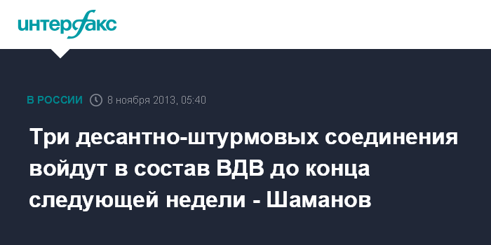 Три десантно-штурмовых соединения войдут в состав ВДВ до конца следующей недели - Шаманов