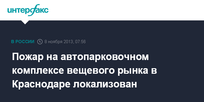 Краснодар. 8 ноября. ИНТЕРФАКС-ЮГ - Пожар на автопарковочном комплексе вещевого рынка в Краснодаре по улице Вишняковой к семи утра локализован на площади тысяча квадратных метров, сообщает пресс-служба ГУ МЧС по Краснодарскому краю.