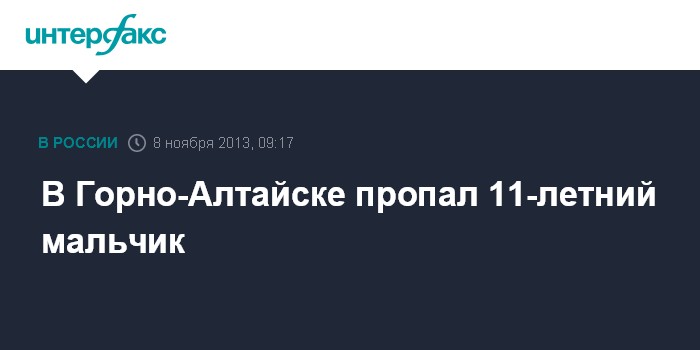Горно-Алтайск. 8 ноября. INTERFAX.RU - Одиннадцатилетний мальчик пропал в столице Республики Алтай Горно-Алтайске.