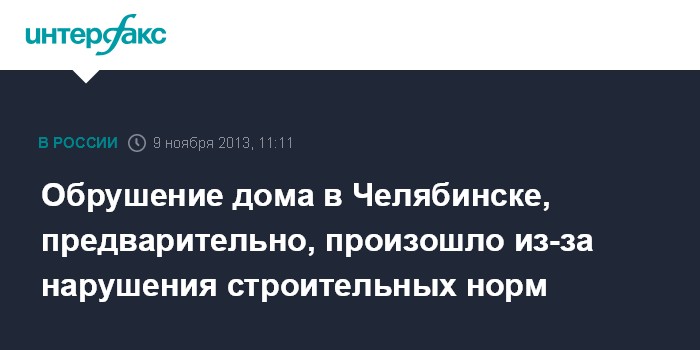 Обрушение дома в Челябинске, предварительно, произошло из-за нарушения строительных норм