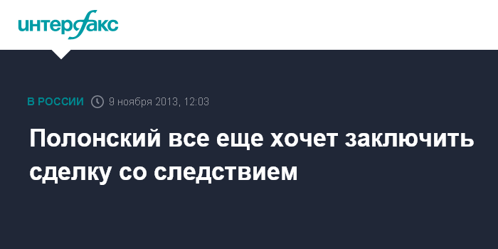 Как сказал он в интервью газете "Московский комсомолец" , опубликованном в субботу, предложение о заключении сделки со следствием было передано лично в руки ведущему дело бизнесмена следователю МВД Олегу Сильченко еще в середине октября. "Да, отправляли. Более того, мой адвокат Александр Карабанов это сказал: предложение было передано лично в руки Сильченко еще три недели назад. И то, что товарищ Сильченко и все другие там говорят, что этого не было, мне кажется, надо проверить их вменяемость. Мой адвокат ему лично в руки передал! А он говорит, что ничего не получали!", - сказал С.Полонский.