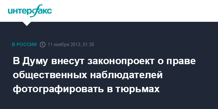 Москва. 11 ноября. ИНТЕРФАКС - ЛДПР предлагает закрепить в законе правила кино-, фото- и видеосъемки в тюрьмах для общественных наблюдателей.