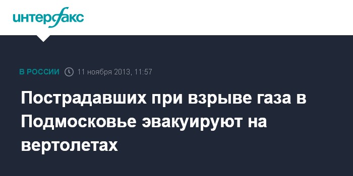 Москва. 11 ноября. INTERFAX.RU - Вертолеты доставят в больницу четверых пострадавших от взрыва бытового газа в жилом доме в Сергиево-Посадском районе Московской области.
