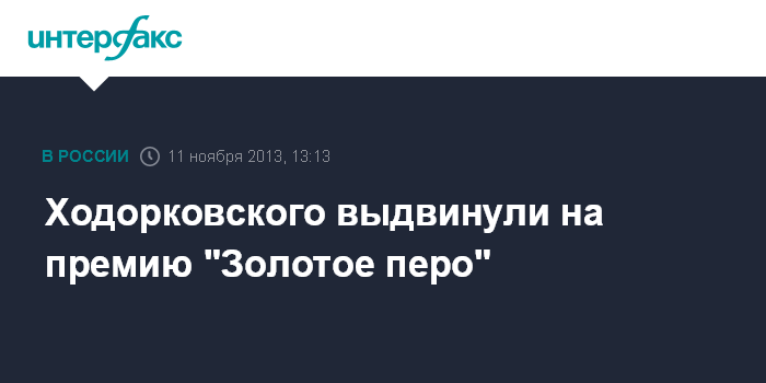 Ходорковского выдвинули на премию "Золотое перо"