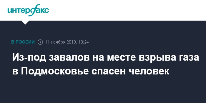Красногорск. 11 ноября. INTERFAX.RU - Спасатели извлекли пострадавшего из-под завалов на месте взрыва газа в многоэтажном доме поселка Загорские Дали Сергиево-Посадского района, сообщил "Интерфаксу" зампред правительства Подмосковья Дмитрий Пестов, находящийся на месте происшествия.