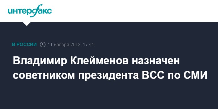 Владимир Клейменов назначен советником президента ВСС по СМИ
