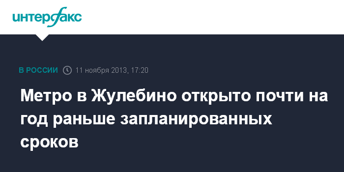 Москва. 11 ноября. INTERFAX.RU - Работы по запуску движения на участке Таганско-Краснопресненской линии метро от станции "Выхино" до станции "Жулебино" были завершены с опережением нормативного срока на 10 месяцев, заявил в субботу журналистам руководитель департамента строительства Москвы Андрей Бочкарев.