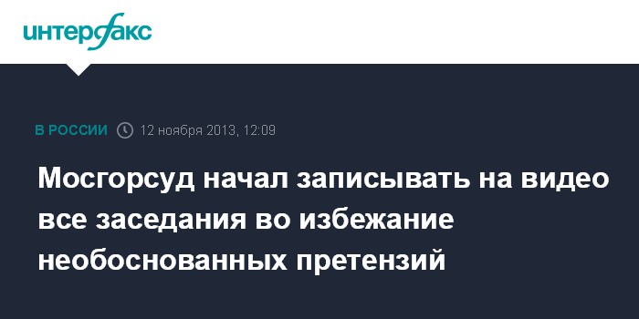 Москва. 12 ноября. INTERFAX.RU - Все заседания, которые проходят в Мосгорсуде, теперь записываются на видеокамеры. Видеозаписи можно будет отправить "в Верховный суд или по инстанциям", исключив возможность подделки.
