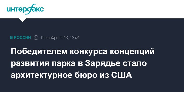 Международный конкурс на ландшафтно-архитектурную концепцию парка "Зарядье" на месте снесенной гостиницы "Россия" возле Кремля был открыт в середине апреля. Целью конкурса была разработка ландшафтно-архитектурной концепции и создание на ее основе современного парка с развитой инфраструктурой.