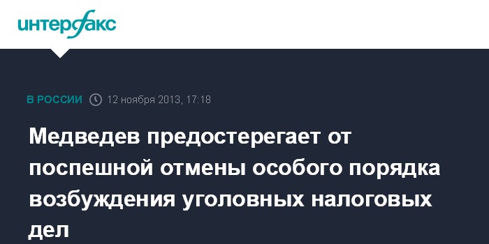Медведев предостерегает от поспешной отмены особого порядка возбуждения уголовных налоговых дел