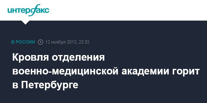 Кровля отделения военно-медицинской академии горит в Петербурге