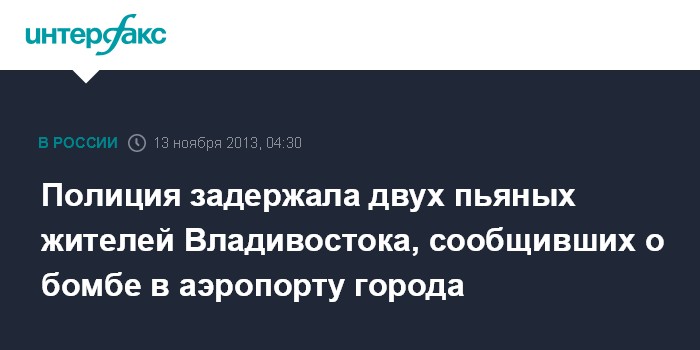 Владивосток. 13 ноября. ИНТЕРФАКС-ДАЛЬНИЙ ВОСТОК - Полицейские задержали двух жителей Владивостока, которые подозреваются в ложном сообщении о взрывном устройстве, заложенном в аэропорту города.