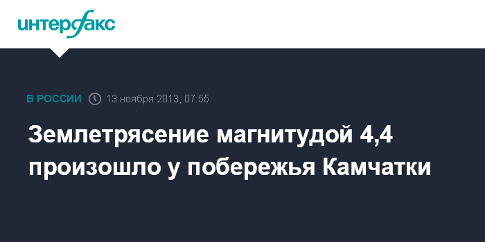Петропавловск-Камчатский. 13 ноября. ИНТЕРФАКС-ДАЛЬНИЙ ВОСТОК - Сейсмологи зарегистрировали землетрясение магнитудой 4,4, произошедшее в Кроноцком заливе у восточного побережья Камчатского полуострова, сообщает в среду Камчатский филиал Геофизической службы РАН.