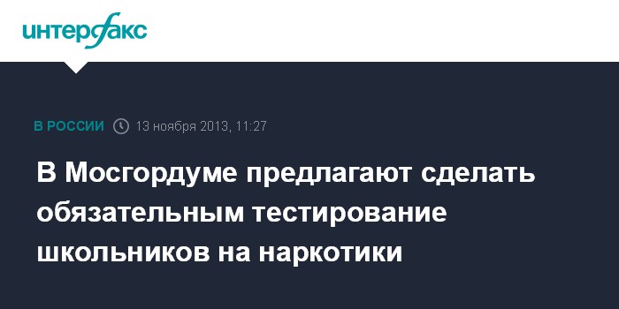 Москва. 13 ноября. INTERFAX.RU - Несколько депутатов Мосгордумы предлагают сделать тестирование школьников на потребление наркотических веществ обязательным, а не добровольным, как предусмотрено законодательством сейчас.