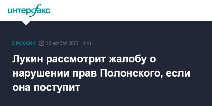 Москва. 13 ноября. INTERFAX.RU - Уполномоченный по правам человека в РФ Владимир Лукин готов рассмотреть жалобу российского бизнесмена Сергея Полонского о нарушении его прав, если таковая поступит.