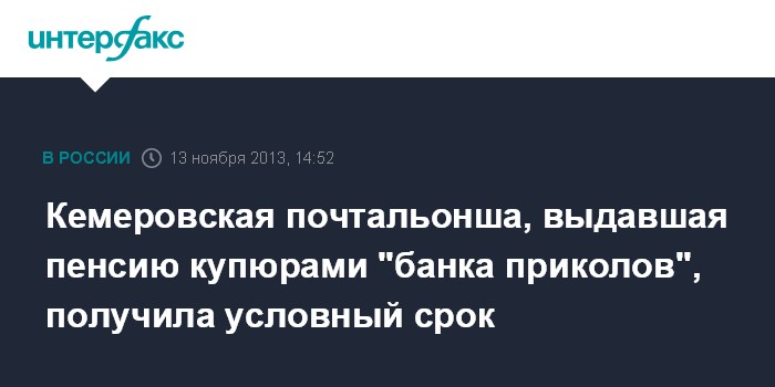 Кемеровская почтальонша, выдавшая пенсию купюрами "банка приколов", получила условный срок