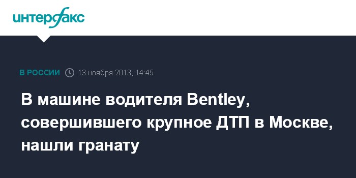 В машине водителя Bentley, совершившего крупное ДТП в Москве, нашли гранату