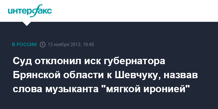 Суд отклонил иск губернатора Брянской области к Шевчуку, назвав слова музыканта "мягкой иронией"